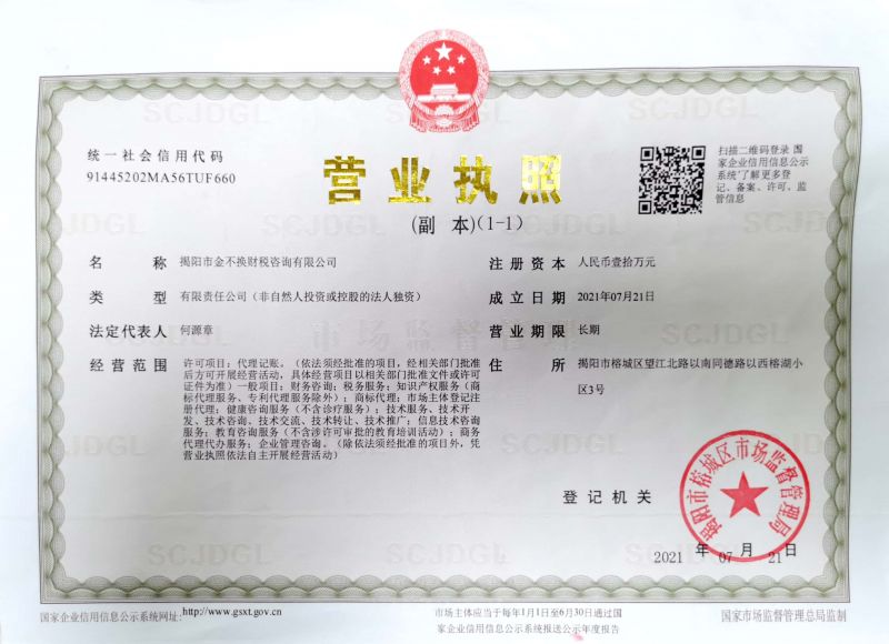 注册公司 代理记账 公司注销揭阳市金不换财税咨询有限公司已认证广东 揭阳15767873680 -